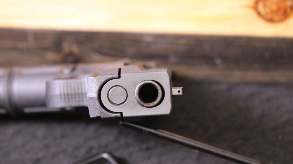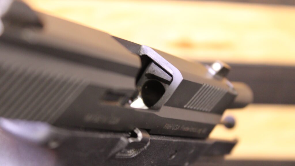 This firearm features a 4 inch barrel and includes one 15 round magazine and a leather holster. The pistol does not include the original case and is being sold as the gun only. It is in good pre owned condition with normal cosmetic wear consistent with prior use. The slide has visible scratches on the right side. No additional accessories are included unless shown in the photos.