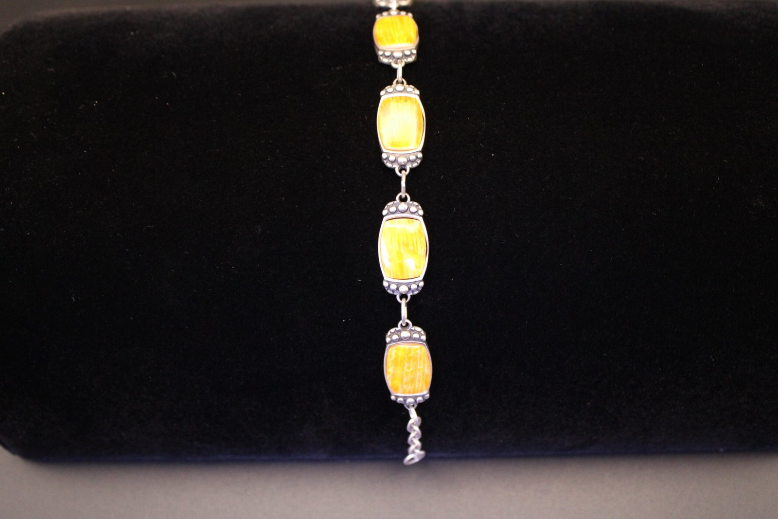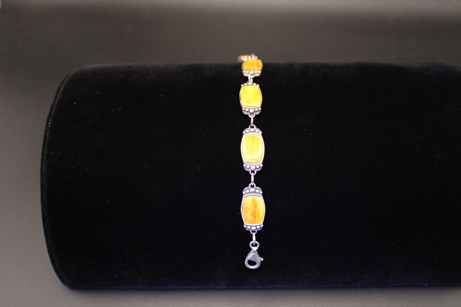 Navajo Sterling Silver and Orange Stone Bracelet