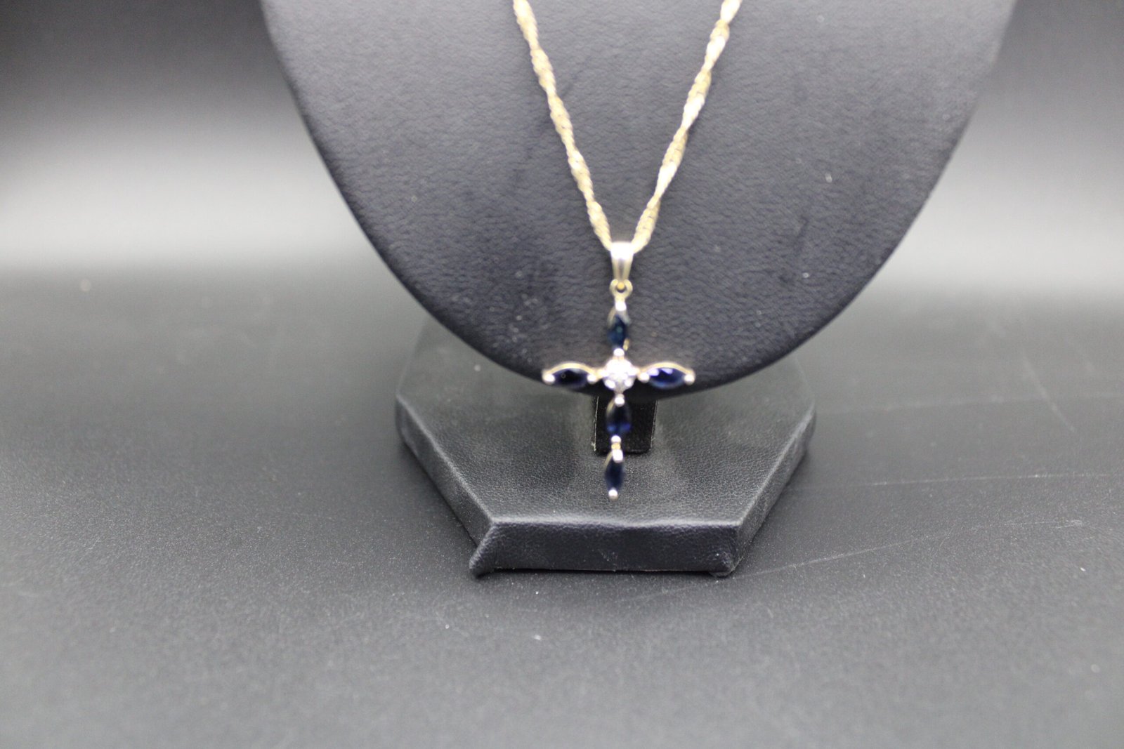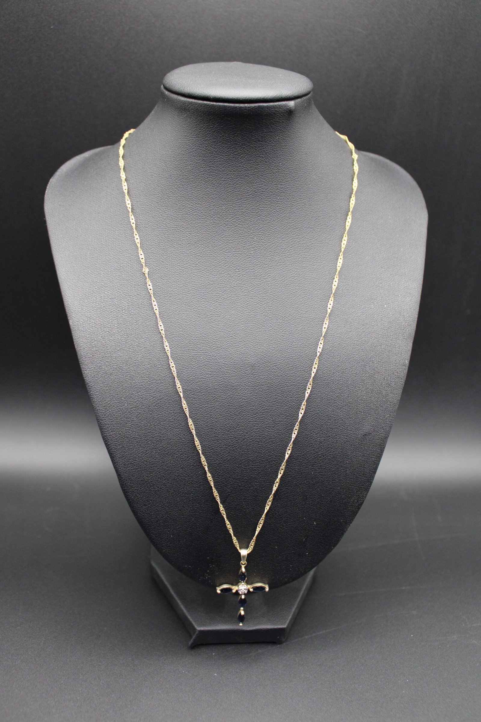 Gold Toned Sterling Silver Sapphire and Diamond Cross Necklace