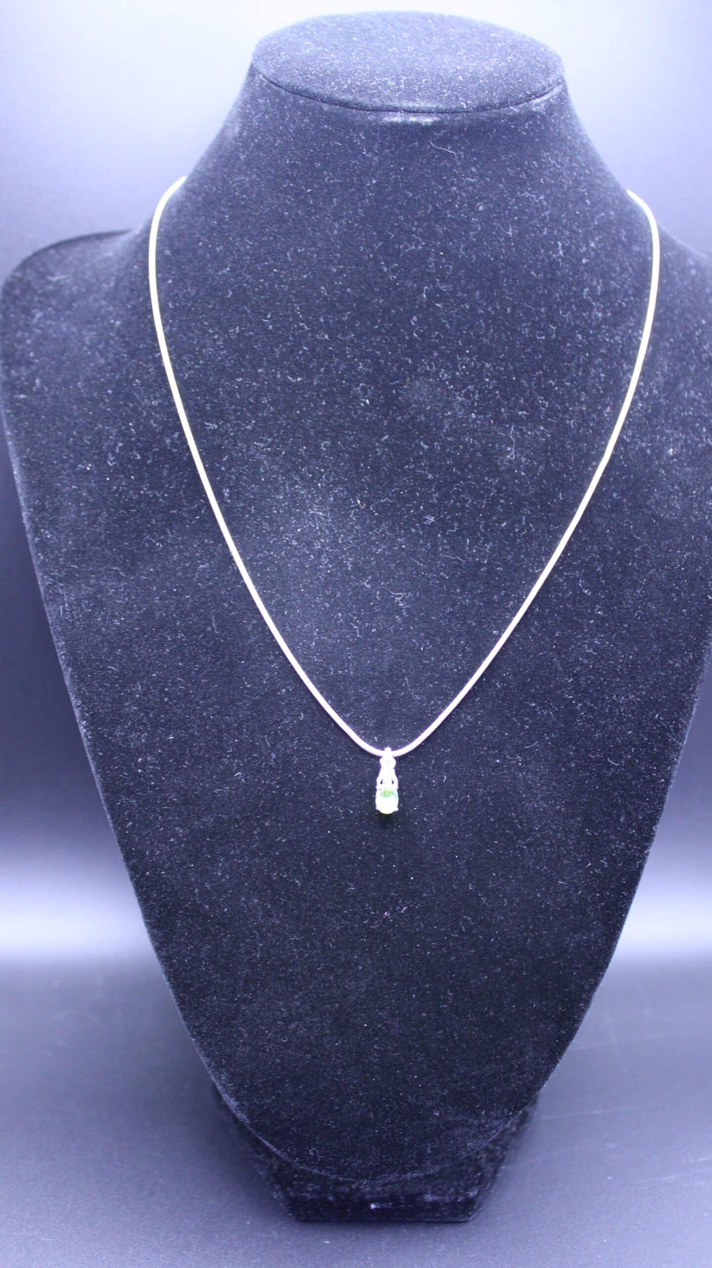 Sterling Silver Snake Chain with Green Teardrop Pendant