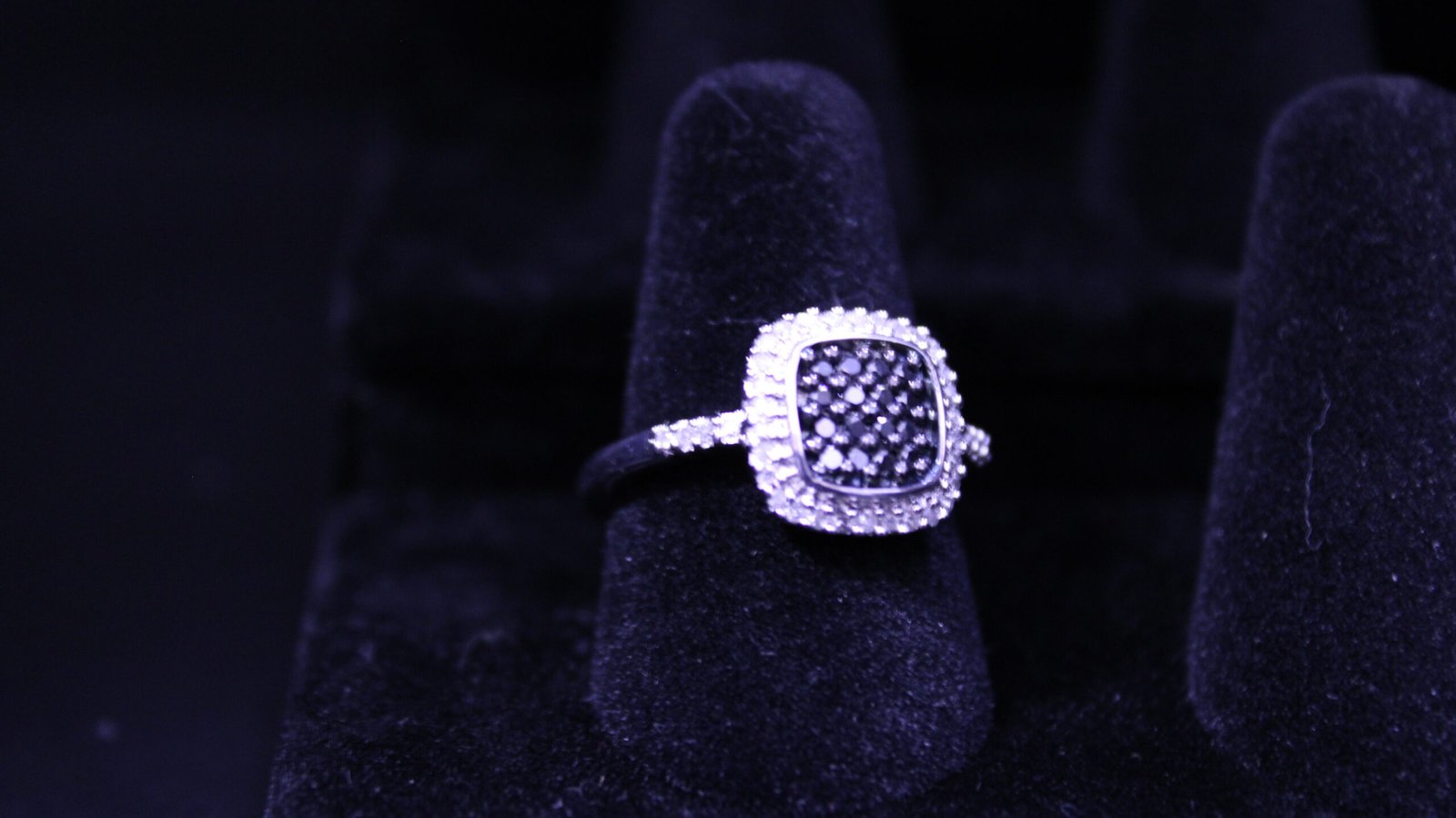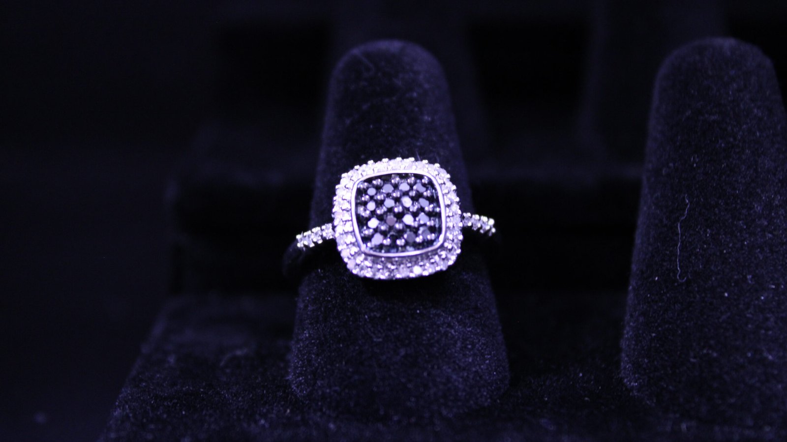Diamond Sterling Silver Ring Square Setting