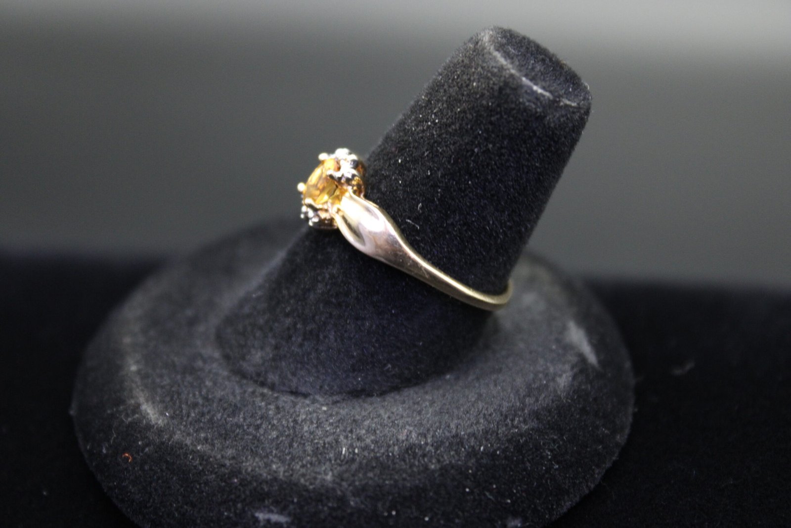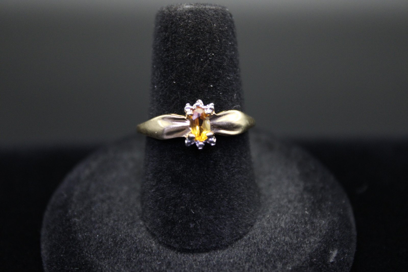 This ring is a size 7 and weighs approximately 1.7 grams. It features an oval cut citrine center stone. The ring is in good pre owned condition with normal cosmetic wear consistent with prior use.