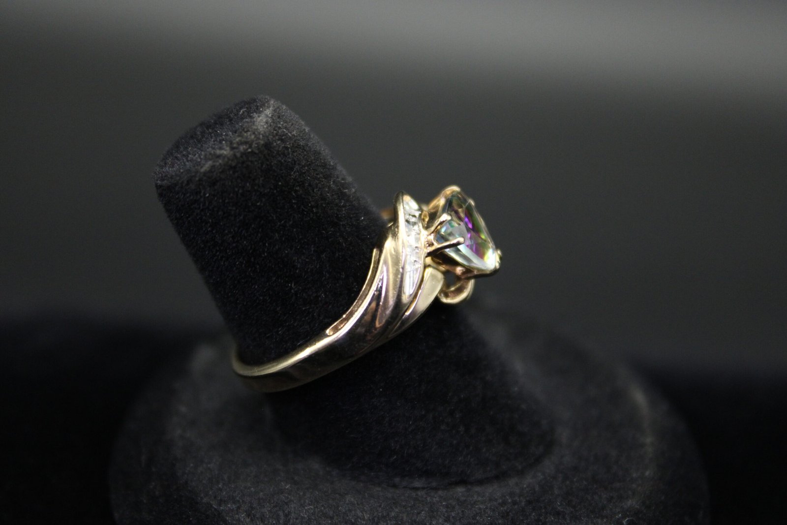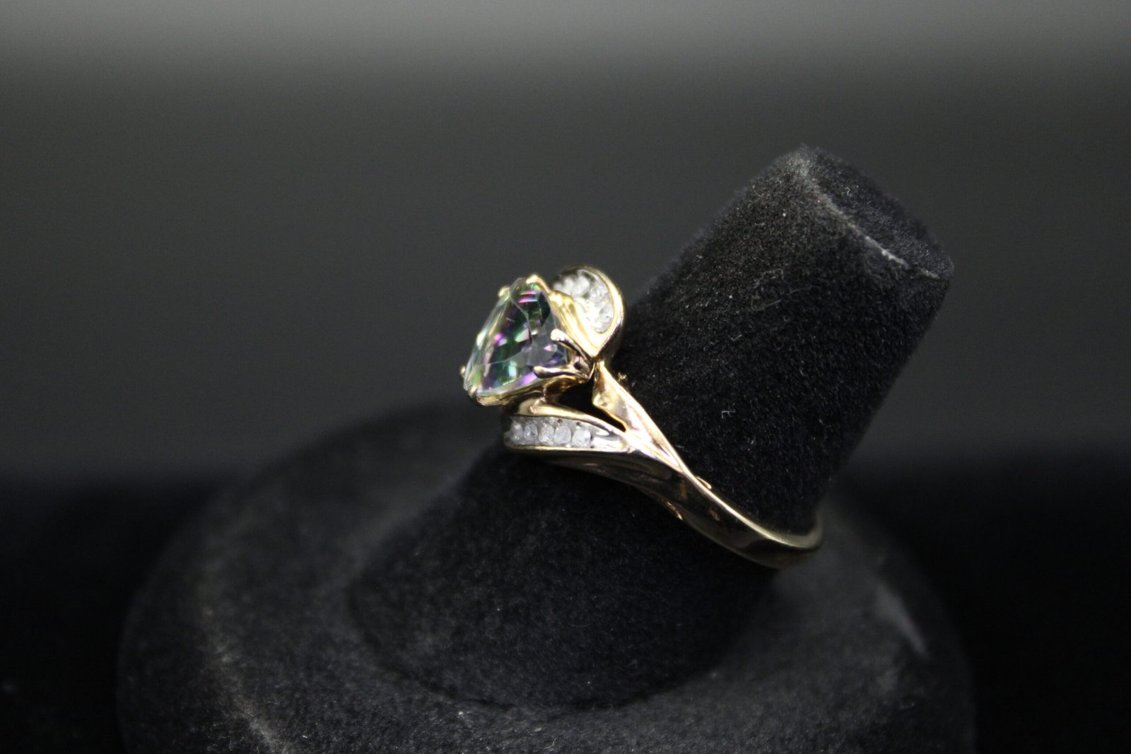 Up for sale is a 10kt yellow gold mystic topaz and diamond ring.